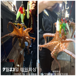 ☆해원피싱작은사이즈 조금큰 사이즈들이 뽕뽕 올라오기 시작야간문어 손맛굿!!!더운날씨에 낚시하시느라 고생하셨습니다✔️야간문어월요일 선비:6만원예약가능합니다✔️평일 주말쭉~~~야간문어출항☆예약현황☆✔️7/27 월요일: 예약가능7/28 화요일: 예약가능7/31 목요일: 준내만갈치:예약가능✔️문어야간저녁6시출항~아침1~2시입항(유동적)☆서비스 무제한☆한강라면 커피 스낵종류아이스아메리카노☆1일전 당일 환불불가✔️선입금후예약완료입니다✔️입금후 꼭 문자주세요✔️해원피싱 선상낚시 출조문의✔️선장:010 4666 9796✔️선장부재시 문자남겨주시면 확인하고 바로 연락드리겠습니다✔️입금계좌번호:농협:352-2243-7988-13우인철*